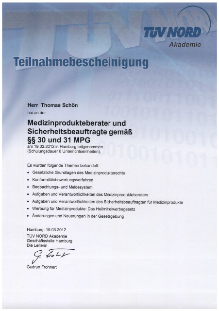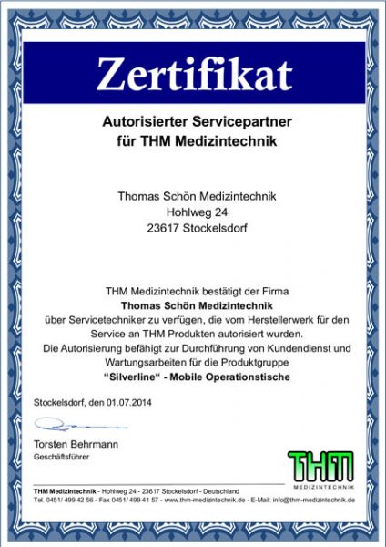 Der Inhaber, Herr Thomas Schön, kann auf eine jahrelange praktische Erfahrung im Bereich von Labor und Medizintechnik der Firma MIELE zurückblicken. Durch die schon seit längerem bestehende Cooperration mit der Firma THM Medzientechnik hat sich Herr Schön ein umfangreiches Fachwissen im Service und Wartung von Operations- und Röntgentischen aneignen können.